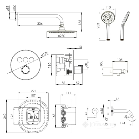 - Склад комплектудушова система зі змішувачем, верхнім і ручним душем