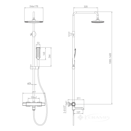 Ширина лійки верхнього душу, мм: 246