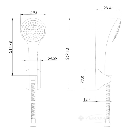 Чехія, гарантія від виробника - 2 роки, душова лійка, шланг, тримач, матеріал: пластик, колір: хром
