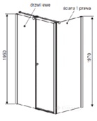 Перейти до докладного описуГ-подібна душова кабіна з одностулкової розстібними дверима та нерухомою бічною стінкою в лінії