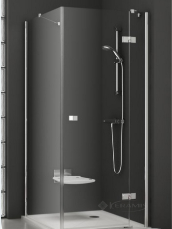 Двоелементні душові двері, пристосовуються до будівельних нерівностей. Можлива установка ліворуч або праворуч. Варіанти петель/ручки/утримувача: хром, вітраж з безпечного скла: transparent (без декору). Висота виробу 1900 мм, Лівий або правий варіанти відкривання дверей визначаються тим, на якій стороні, при вигляді зовні, знаходяться петлі. Встановлюється в облицьований кахлем кут ванної кімнати (ідеально для облицьованої ніші або для комбінації з нерухомою стінкою SMPS ) на піддони RAVAK Angela, Perseus, Perseus Pro, Perseus Pro Flat, Perseus Pro Chrome, Gigant Pro, Gigant Pro Flat, Gigant Pro Chrome або безпосередньо на підлогу з вбудованим душовим каналом. Душові двері пропонуються у варіантах A або B. Модель A призначена для установки в будівельний отвір на 11 мм менший, ніж стандартний розмір виробу. Модель B призначена для установки в будівельний отвір на 15 мм більший, ніж стандартний розмір виробу. З допомогою інсталяційного профілю відкоригуєте будівельні нерівності (за 1,5 с