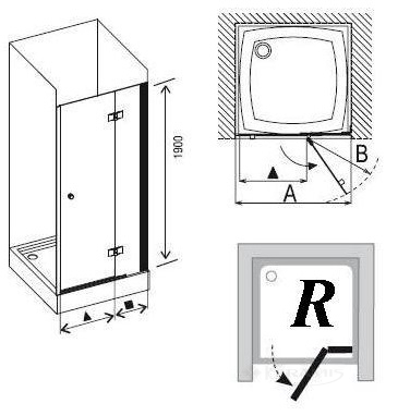 Двоелементні душові двері, пристосовуються до будівельних нерівностей. Можлива установка ліворуч або праворуч. Варіанти петель/ручки/утримувача: хром, вітраж з безпечного скла: transparent (без декору). Висота виробу 1900 мм, Лівий або правий варіанти відкривання дверей визначаються тим, на якій стороні, при вигляді зовні, знаходяться петлі. Встановлюється в облицьований кахлем кут ванної кімнати (ідеально для облицьованої ніші або для комбінації з нерухомою стінкою SMPS ) на піддони RAVAK Angela, Perseus, Perseus Pro, Perseus Pro Flat, Perseus Pro Chrome, Gigant Pro, Gigant Pro Flat, Gigant Pro Chrome або безпосередньо на підлогу з вбудованим душовим каналом. Душові двері пропонуються у варіантах A або B. Модель A призначена для установки в будівельний отвір на 11 мм менший, ніж стандартний розмір виробу. Модель B призначена для установки в будівельний отвір на 15 мм більший, ніж стандартний розмір виробу. З допомогою інсталяційного профілю відкоригуєте будівельні нерівності (за 1,5 с