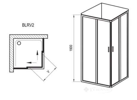 Додатково комплектуються душовими дверима BLRV2K різних розмірів