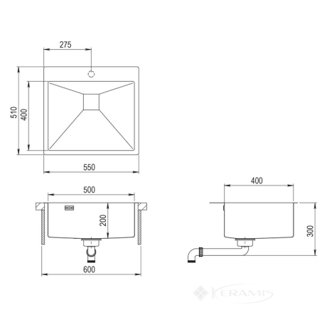Литва, гарантія від виробника - 3 роки, форма прямокутна, установка врізний, матеріал нержавіюча сталь, колір мідний