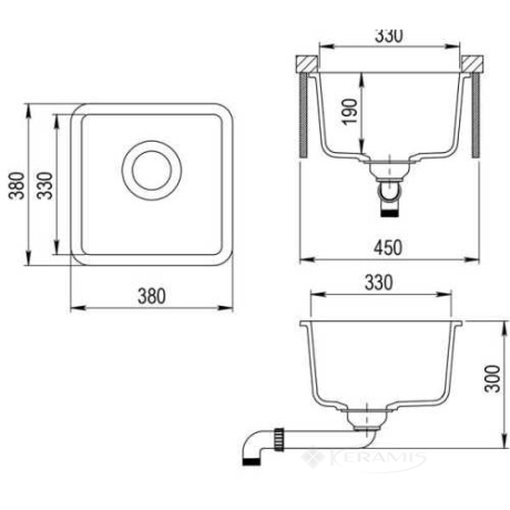 Перейти до докладного описуКухонна мийка Aquasanita Arca 380x380x190 алюметаллик (SQA100W 202):
