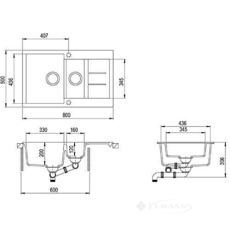 Кухонна мийка Aquasanita Tesa 800x500x200 альба (SQT151W 710):