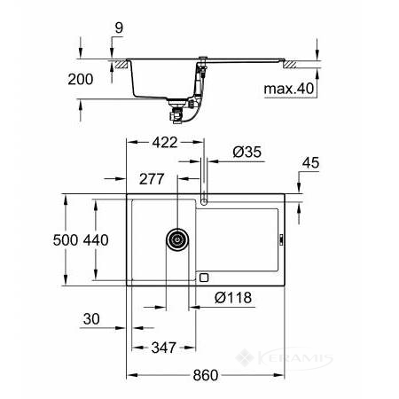Німеччина, гарантія від виробника - 6 років, форма прямокутна, установка врізна на стільницю, матеріал граніт, колір чорний