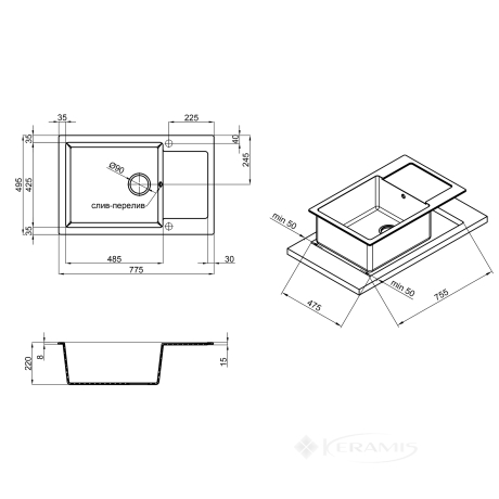 Кухонна мийка Lidz 781x510 /200 сірий GRA-09 (LIDZGRA09781510200)- виготовлена з якісного штучного каменю, має матову поверхню і буде добре виглядати в поєднанні зі змішувачем того ж кольору. Виріб монтується врізним способом в підготовлений отвір в стільниці. Мийка виконана з основною і додатковою чашами і невеликим крилом, з отвором слив-перелив і отвором під змішувач. Відмінна якість і дизайн мийки дозволять задовольнити найвищі вимоги.