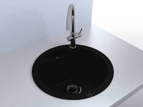 Україна, гарантія від виробника - 10 років, форма кругла, установка врізний, матеріал граніт, колір чорний