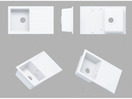Кухонна мийка Miraggio Versal 75,8x46,2 сіра, виготовляються за розробленою фахівцями компанії технології MIRASTONE і має вагу 11,85 кг. До складу суміші входить тільки кварцовий пісок, смоли та антибактеріальні добавки.