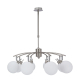 Виготовлений з високоякісного скла, абажур люстри має гарний білий колір, забезпечуючи м'яке та заспокійливе світіння в будь-якому приміщенні. Гладка металева основа кольору хрому надає вишуканості та доповнює загальний сучасний стиль люстри.