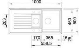 Німеччина, форма прямокутна, установка врізна на стільницю, матеріал граніт, колір білий