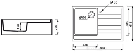 Польща, гарантія від виробника - 10 років, форма прямокутна, установка врізна на стільницю, матеріал граніт