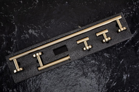Усі елементи виготовлені з високоякісного металу, стійкого до вологи та корозії. Поверхня надає елегантності та виразного характеру, зберігаючи стійкість до слідів експлуатації. Аксесуари кріпляться до стіни, що гарантує стабільність, довговічність і зручність у щоденному користуванні.