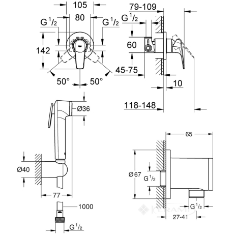 Відгуки про товар Набір для гігієнічного душу Grohe Bauflow хром (UA12164501)2 відгука