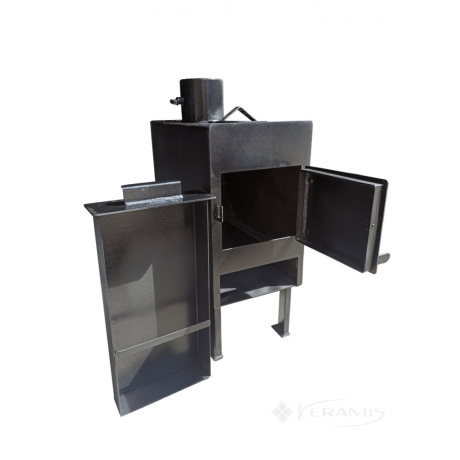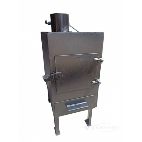 Піч-буржуйка Буржуй сталева з конфоркою виготовлена ??зі сталі товщиною 3 мм, призначена для внутрішнього обігріву приміщень. Має невеликі розміри та одну конфорку. У комплекті: шибер, відбійник полум'я, зольний ящик, сталеві колосники, ручка.