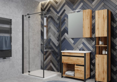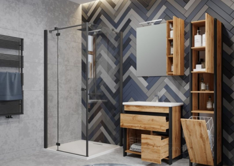 Шафа-пенал має в своїй конструкції двоє дверцят. Внутрішній простір верхнього відділення розділений однією полицею з ДСП, а у нижньому відділенні розташований кошик для білизни. Між верхнім та нижнім відділенням передбачена відкрита ніша з поличкою посередині.