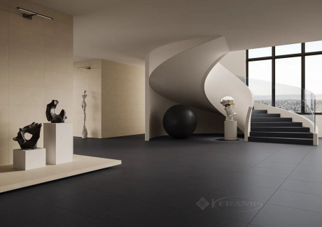 Взаємодія необробленої краси з неоднорідною текстурою та кольором бетону ідеально підходить для сучасних, нейтральних за дизайном інтер'єрів – особливо інвестиційних. Ефект однорідності був посилений завдяки використанню технології кросоверу, яка дозволяє досягти колірної відповідності поперечного перерізу плитки та її поверхні за рахунок фарбування маси. Процес виробництва забезпечив високі експлуатаційні параметри, зокрема стійкість до стирання чи ковзання.