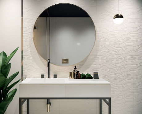 Польща, базова плитка, глянцева; структурна, кераміка, ректифікована; рельєфна, колір: bianco