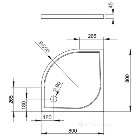 Перейти до докладного описуПлоский півкруглий піддон для монтажу безпосередньо на підлозі. Отвір під сифон 90. Рекомендований сифон TB 90P, R400Slim.