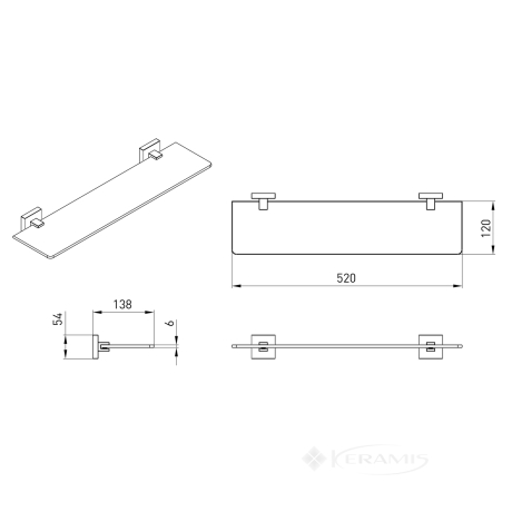 Перейти до докладного описуСкляна полиця, хромоване покриття, матеріал: цинк, нержавіюча сталь, матове скло, гарантія 3 роки