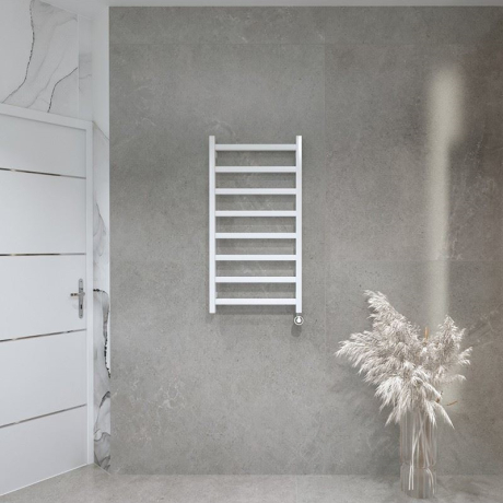 Електричний радіатор для ванної кімнати Lungo White 960 з нагрівачем White – сучасне рішення, яке ідеально підійде для ванних кімнат невеликого та середнього розміру. Виріб має чистий білий колір, який вписується у скандинавський або мінімалістський дизайн. Модель має розміри 960х500 мм. Виріб виготовлений із міцної низьковуглецевої сталі та забезпечує рівномірне та ефективне нагрівання. Максимальна робоча температура становить 95 ° С, що дозволяє швидко та ефективно обігріти ванну кімнату.