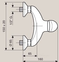 Перейти до докладного описуЗмішувач для душа, оснащений керамічним дисковим картриджем під один важіль змішування та регулювання холодної – гарячої води. У стандартну комплектацію входять дві ексцентричні муфти для настінного монтажу і два декоративних відбивача, без душового гарнітура. Суцільно - литий корпус змішувача виготовлений з екологічно чистого матеріалу (латунь).