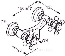Німеччина, гарантія від виробника - 5 років, колір: позолочений, 23 кар, матеріал: латунь, двохвентильний, установка на стіну, тип: на два отвори, стиль: ретро, механізм: керамічна кран-букса