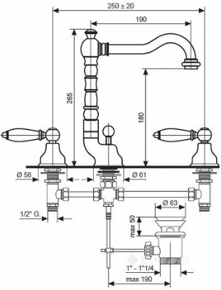 Перейти до докладного описуЗмішувач оснащений двома важелями змішування та регулювання холодної – гарячої води. Врізний, монтується на 3 отвори на умивальник. Корпус змішувача виготовлений з екологічно чистого матеріалу (латунь).