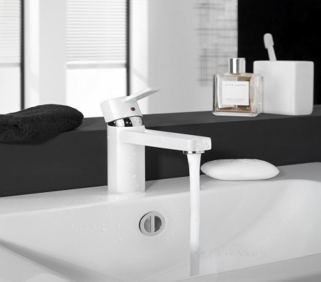 Німеччина, гарантія від виробника - 5 років, колір: білий/хром матеріал: латунь, одноважільний, установка на умивальник, тип: на один отвір, стиль: сучасний механізм: керамічний картридж