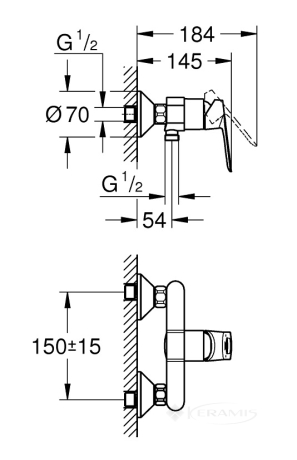 Німеччина, гарантія від виробника - 5 років, колір: хром матеріал: латунь, одноважільний, установка на стіну, тип: на два отвори, стиль: сучасний механізм: керамічний картридж