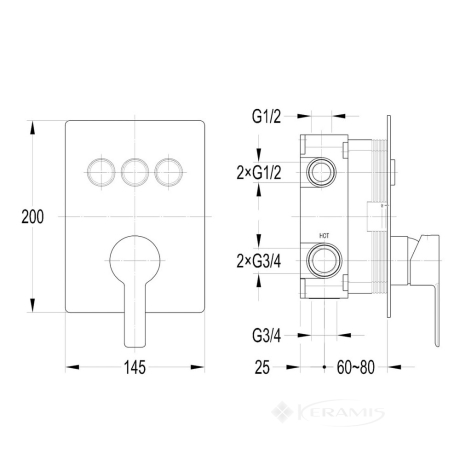 Матеріал - латунь (включаючи ручку і лицьову панель), керамічний картрідж KEROX (Угорщина), латунний картридж для кнопок Smart Click.