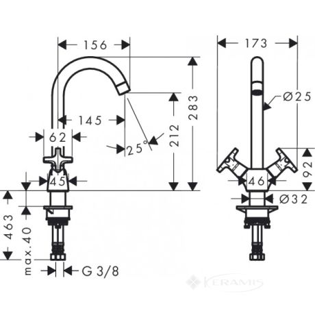 Змішувач для кухні Hansgrohe Logis Classic 71285000 : Винос виливу: 145 мм, Висота виливу: 212 мм, Кут повороту виливу регулювання на 3 рівня на 110°, 150° або 360°, Звичайна струмінь, Підходить для проточних водонагрівачів.