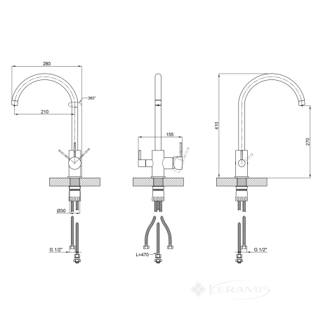 Функціональний та сучасний змішувач ідеально заповнить простір вашої кухні, зберігаючи бездоганний зовнішній вигляд та естетику інтер'єру. Висока якість використовуваних матеріалів забезпечує довговічність та надійність виробу. Комплектація: змішувач, гнучка підводка, кріплення.
