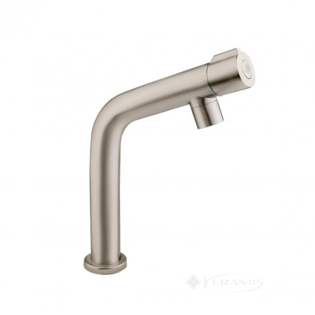Кран на воду для кухні Lidz (NKS) 01 04 003 00 виготовлений з нержавіючої сталі. Завдяки нікельованій поверхні має оригінальний зовнішній вигляд. Виконаний у класичному стилі з вентильною ручкою для регулювання напору холодної води.