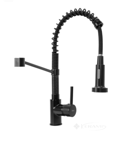 Змішувач для кухні Rea Spring чорний (REA-B4804)- Основа будь-якої функціональної кухні – правильний кухонний змішувач. Металевий корпус, з якого виготовлено цей виріб, є гарантією довговічності та стабільності роботи змішувача. Матове покриття робить змішувач стійким до забруднення, а чорний колір надає йому незвичайного вигляду, який ідеально впишеться в інтер'єр вашої кухні.