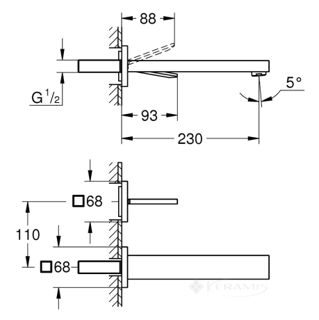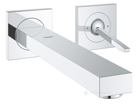 Німеччина, гарантія від виробника - 5 років, колір: хром матеріал: латунь, одноважільний, установка на умивальник, тип: на два отвори, стиль: кубічний, механізм: керамічний картридж