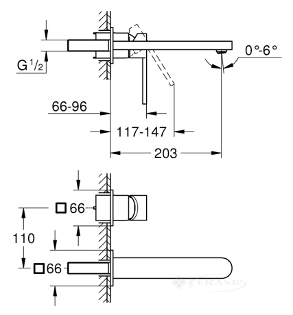 Німеччина, гарантія від виробника - 5 років, колір: хром матеріал: латунь, двухрычажный, установка на стіну, тип: на два отвори, стиль: кубічний