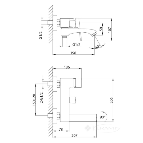 Китай, гарантия от произв. - 3 года, цвет: gungrey, материал: латунь, однорычажный, установка на стену, механизм: керамический картридж