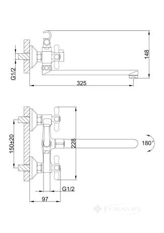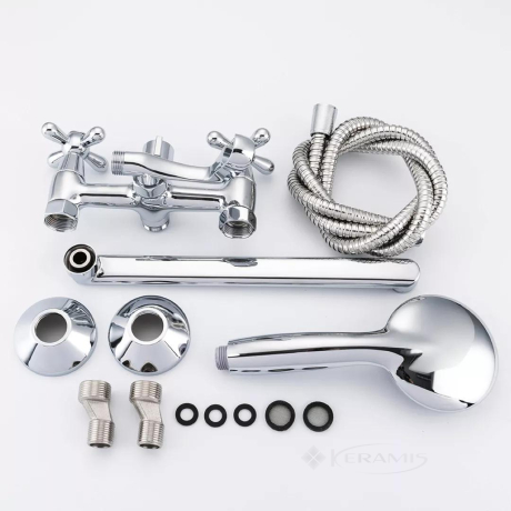 Китай, гарантия от произв. - 3 года, цвет: хром, материал: латунь, двухвентильный, установка на стену, механизм: керамическая кран-букса