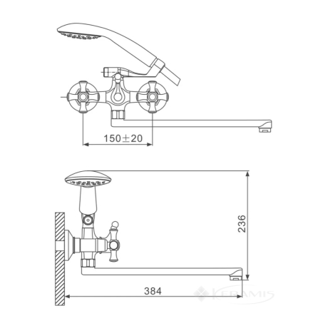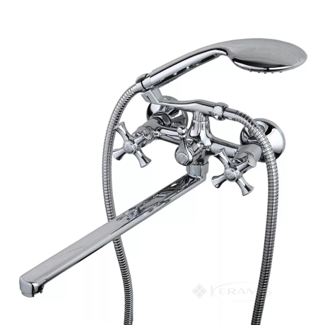 , Гарантія від произв. - 5 років, колір: хром, матеріал: латунь, двовентильний, встановлення на стіну, механізм: керамічна кран-букса