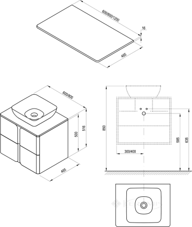 Стільниця під умивальник Ravak Balance 80x46,5x1,6 біла (X000001371) - встановлюється на підвісну тумбу SD Balance 600 і дозволяє розмістити умивальник для стільниці: