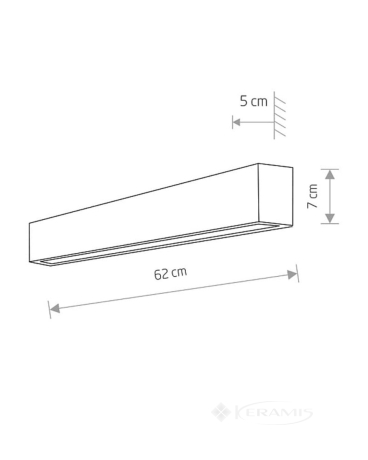 Висота становить 70 мм, довжина – 50 мм, ширина – 620 мм.