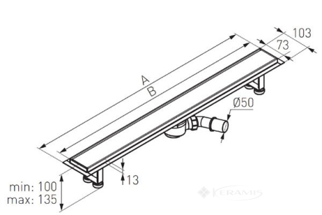 Перейти до докладного описуТрап Ferro з сифоном DN40/50 і ніжками 80 см, під плитку (OLP1-80):
