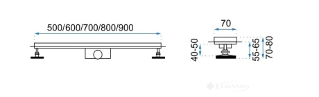 У комплекті: Злив, маскувальна пластина, ніжки, сифон, манжета Dry-Fix, кошик, інструкція з експлуатації, гачок для зміни маскувальної пластини.