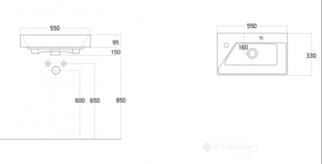 Комплектується керамічним умивальником «Stance-55», виробник «Sanovit», Туреччина.