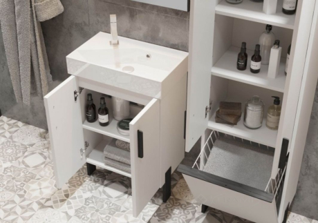 Глибина тумби з умивальником (усього 33 см) дозволяє встановлювати її у ванній кімнаті з обмеженим простором, яка потребує компактного смарт-рішення.