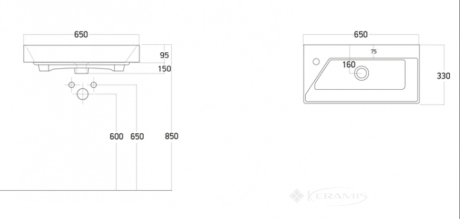Комплектується керамічним умивальником «Stance-65», виробник «Sanovit», Туреччина.