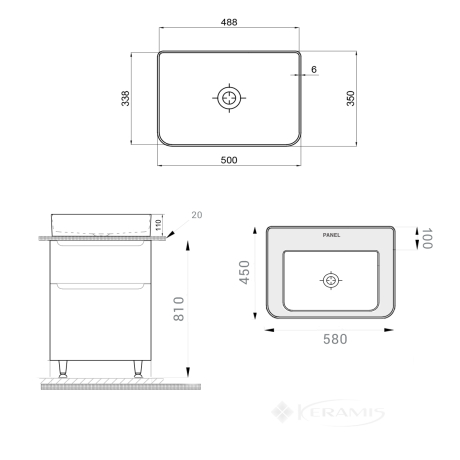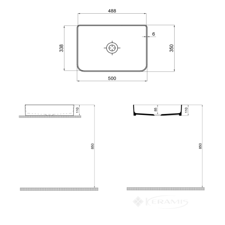 У комплекті поставляється високоякісний керамічний умивальник (входить у вартість), товщина умивальника 110 мм. Порівняйте білизну керамічного умивальника з аналогами. Глибина умивальника 85 мм.