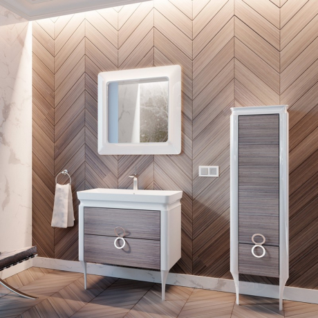 Перейти до докладного описуКорпус і фасадні частини меблів виготовлені з МДФ, Поверхні меблів оброблені: всередині виробу – матовим покриттям (колір типу "Титан"), зовні вироби – высокоглянцевым покриттям і високоякісним натуральним шпоном, Колір тумбочок комбінований, можливо два варіанти: корпус чорний, фасадні частини білі, корпус білий, фасадні частини натуральний шпон дуб пастельний», Тумба містить два висувних ящика, Висувні ящики з металевими боковинами на напрямних з функцією самодотягивания повного висунення «InnoTech», що забезпечує плавне закриття, В конструкції верхнього ящика передбачено отвір для підведення зливу, Меблі підвісна, в тумби вмонтовані регульовані навіси, Дизайн меблів збагачують витончені ніжки і ручки з нержавіючої сталі, Тумбочка комплектується керамічним умивальником «Luxury-105»